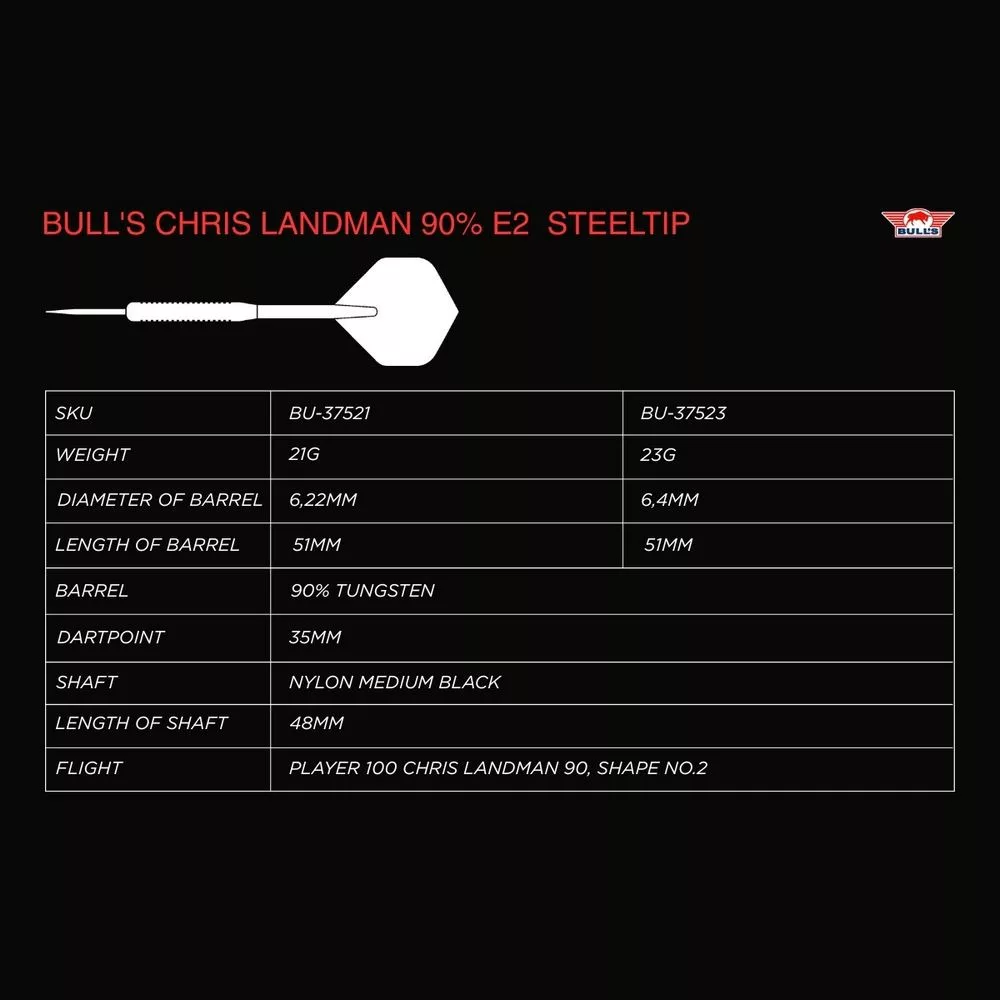 Bull’s Chris Landman E2 sú steel-tip šípky navrhnuté v spolupráci s holandským profesionálnym hráčom