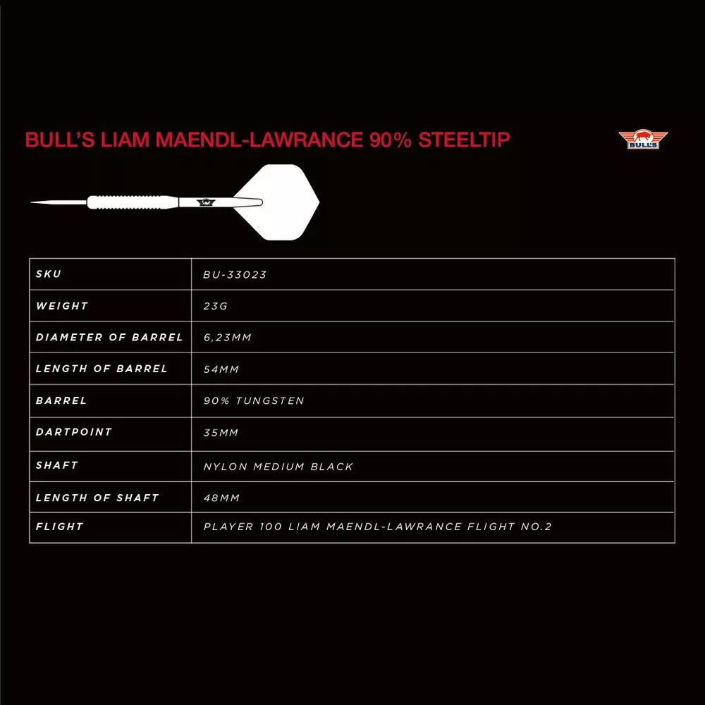 Šípky steel Bull's Liam Maendl-Lawrance 23g 90% wolfram – Profesionálna presnosť pre ambicióznych hráčov