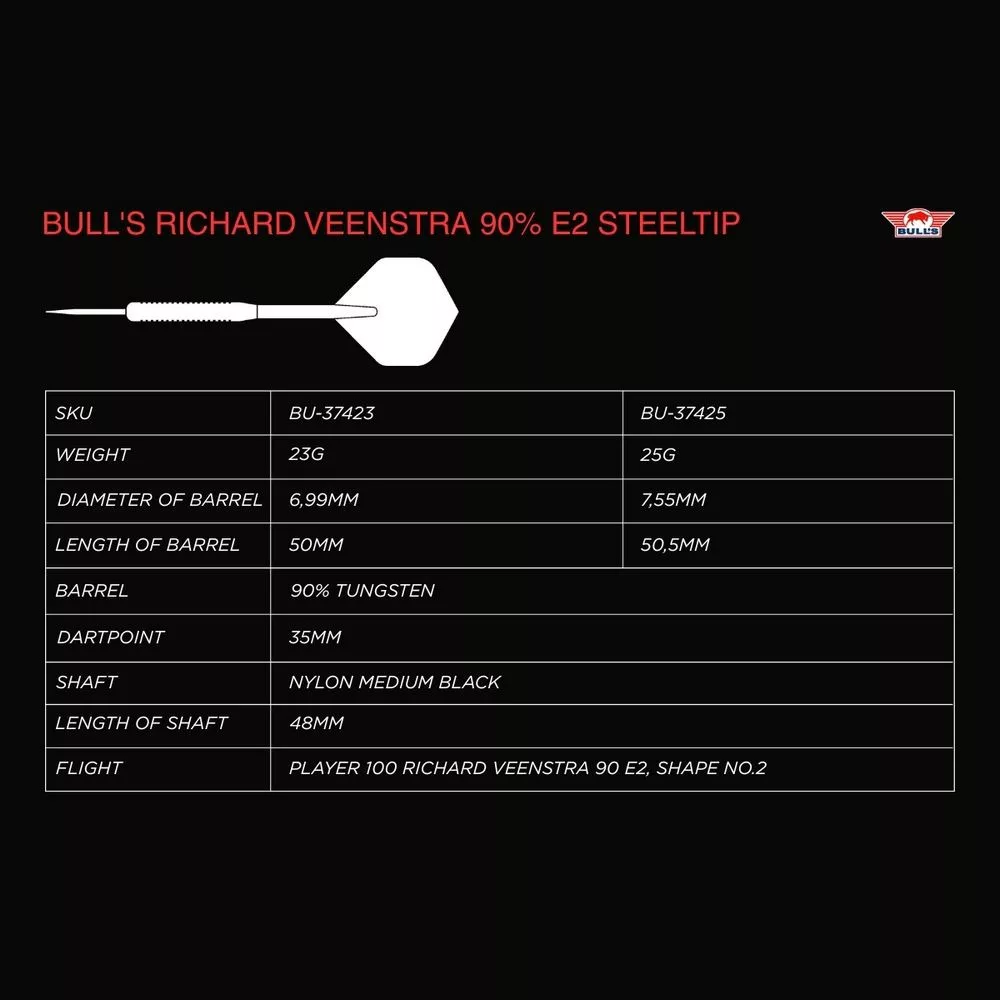 Bull's Richard Veenstra E2 sú profesionálne šípky navrhnuté na mieru holandskému hráčovi Richardovi Veenstrovi. Ich štíhle a mierne kónické telo z