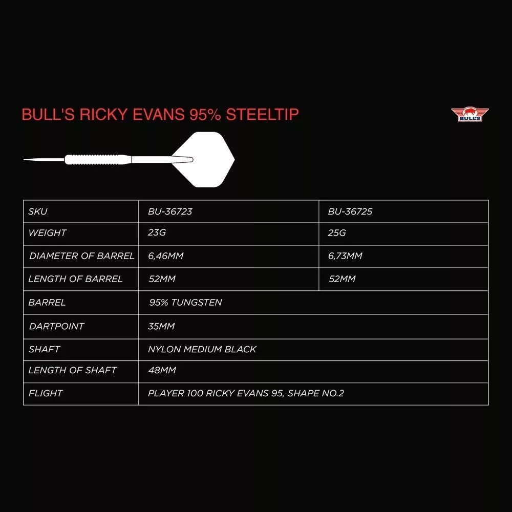profesionálnym darts setom Bull's Ricky Evans 23g, navrhnutým v spolupráci s ikonickým hráčom Ricky Evansom. Tieto šípky sú ideálnou voľbou pre hráčov, ktorí hľadajú