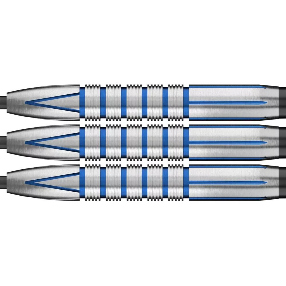 - 90 % wolframové telo – štíhly profil s mierne kónickým predkom pre ideálnu rovnováhu a presné zoskupovanie hodov