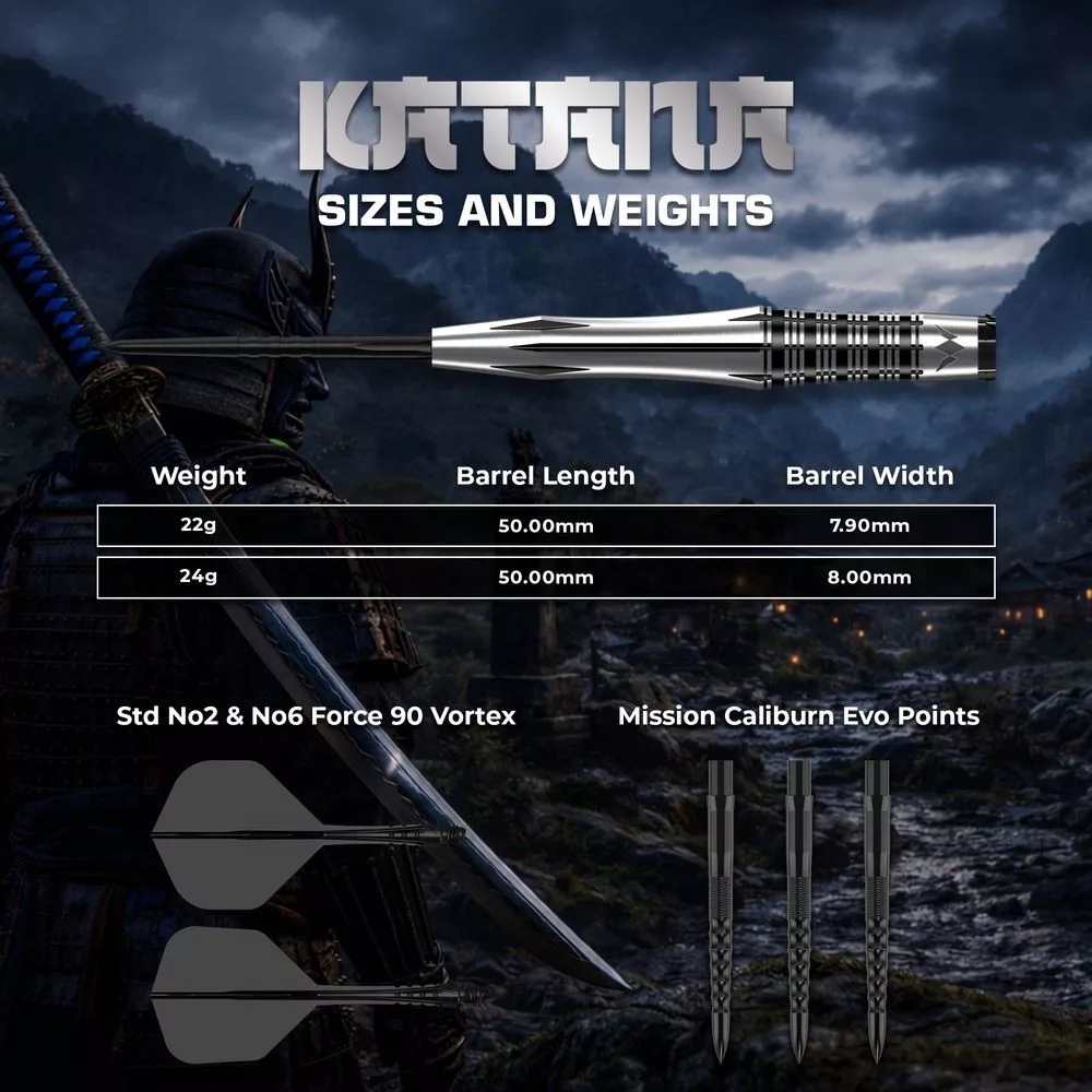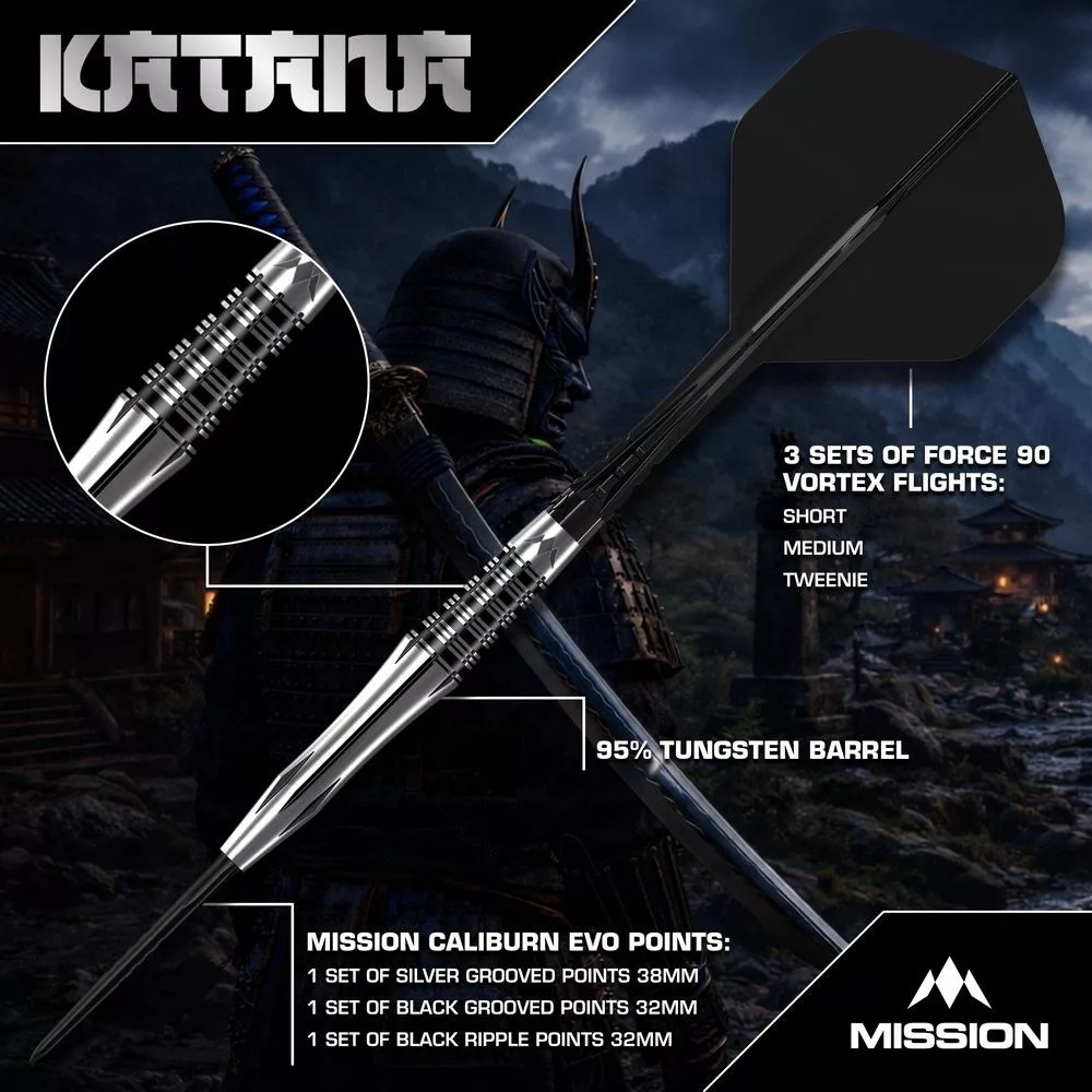 Mission Katana sú steel šípky pomenované podľa ikonického japonského zahnutého meča. Verzia