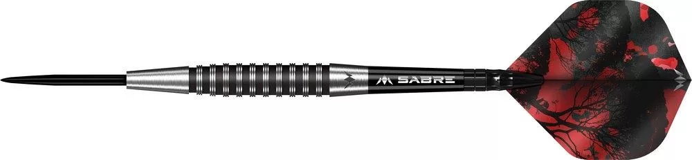 - Kompletné príslušenstvo: Krátke čierne shafty Mission Sabre a originálne flighty v čierno-červenom dizajne pre stabilný let na sisalových terčoch.