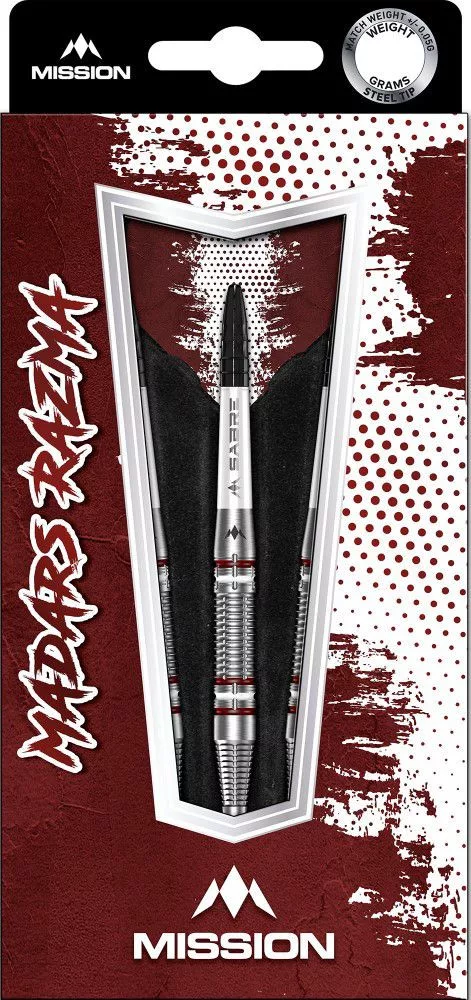 Mission Madars Razma 25g – setom, ktorý v sebe spája silu, precíznosť a štýl inšpirovaný prvým lotyšským hráčom medzi top 32 PDC Order of Merit. Tento profesionálny set je vyrobený z