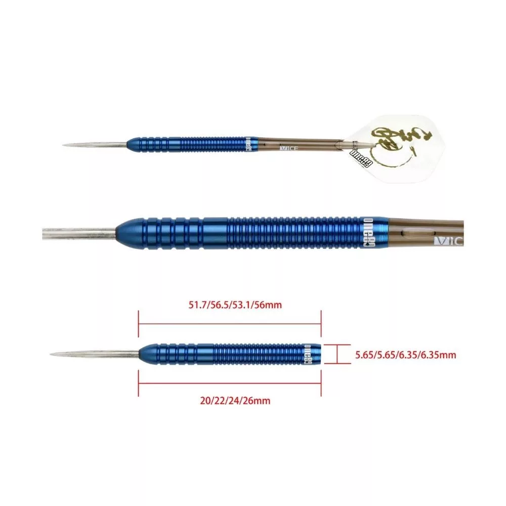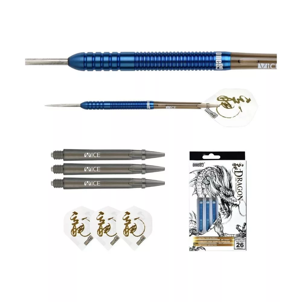 Šípky ONE80 Ice Dragon 26 g predstavujú profesionálny model navrhnutý pre hráčov, ktorí vyžadujú maximálnu presnosť, kontrolu a konzistentnosť. Vďaka vysokému obsahu wolfrámu (90 %) a extra tenkému profilu umožňujú veľmi tesné zoskupenie hodov a vysokú efektivitu pri hre.