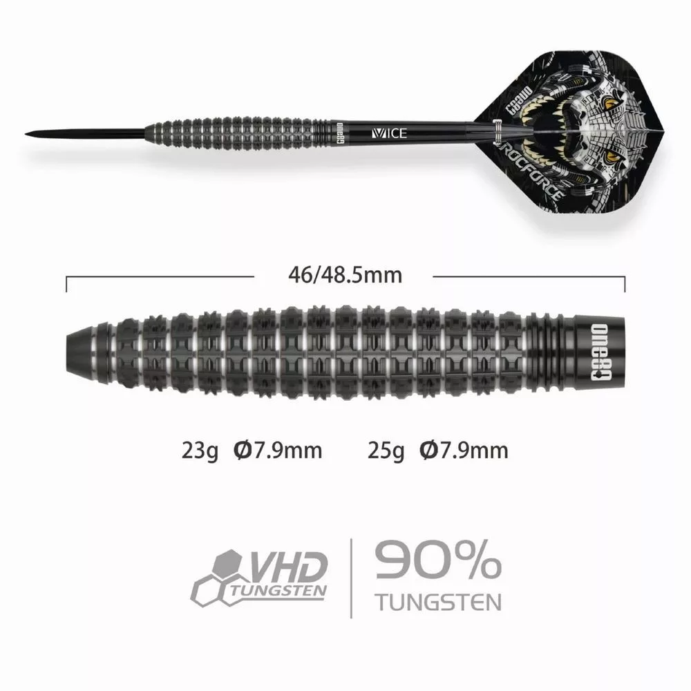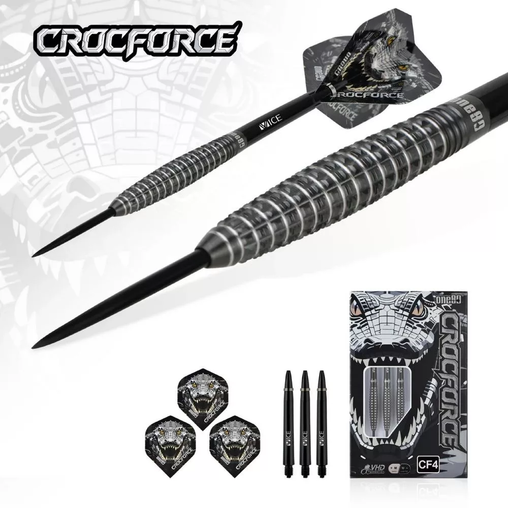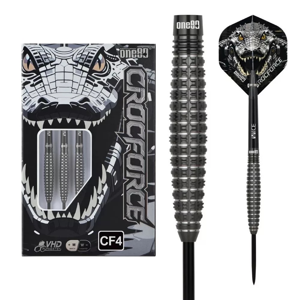 One80 Crocforce CF4 predstavujú špičkové steel šípky navrhnuté pre profesionálnych hráčov, ktorí hľadajú agresívny dizajn a maximálnu presnosť pri hode. Ich unikátny krokodílí motív a čierne prevedenie dodávajú šípkam výrazný vzhľad, zatiaľ čo precízne spracovaný grip poskytuje výnimočnú kontrolu v každom okamihu hry.