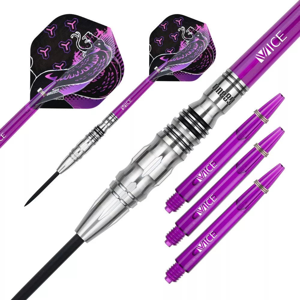 Telo šípok má hrúbku 7,5 mm, dĺžku 48 mm a celkovú váhu 24 gramov, čo zaručuje maximálnu stabilitu a pohodlie pri hode. Šípky sú vybavené dlhou plastovou násadkou Vice (48 mm) a kvalitnými štandardnými letkami One80 (100 mikrónov), ktoré zabezpečujú plynulý a presný let. Čierne štandardné oceľové hroty poskytuje pevné zapichnutie do sisalového terča.
