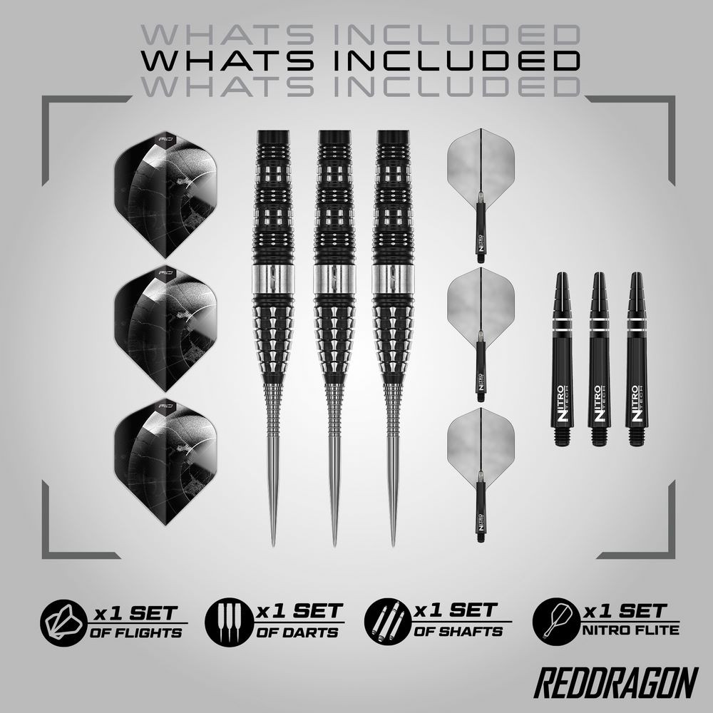 Red Dragon Recon Torpedo 25g sú profesionálne oceľové šípky navrhnuté pre presnosť, kontrolu a silu hodu. Vďaka robustnému telu s priemerom 7,85 mm a torpédovému tvaru sú ideálne pre hráčov, ktorí preferujú širší úchop a plynulé uvoľnenie. Dvojtónová povrchová úprava (čierne PVD + striebro) zvyšuje nielen odolnosť, ale aj vizuálny dojem.
