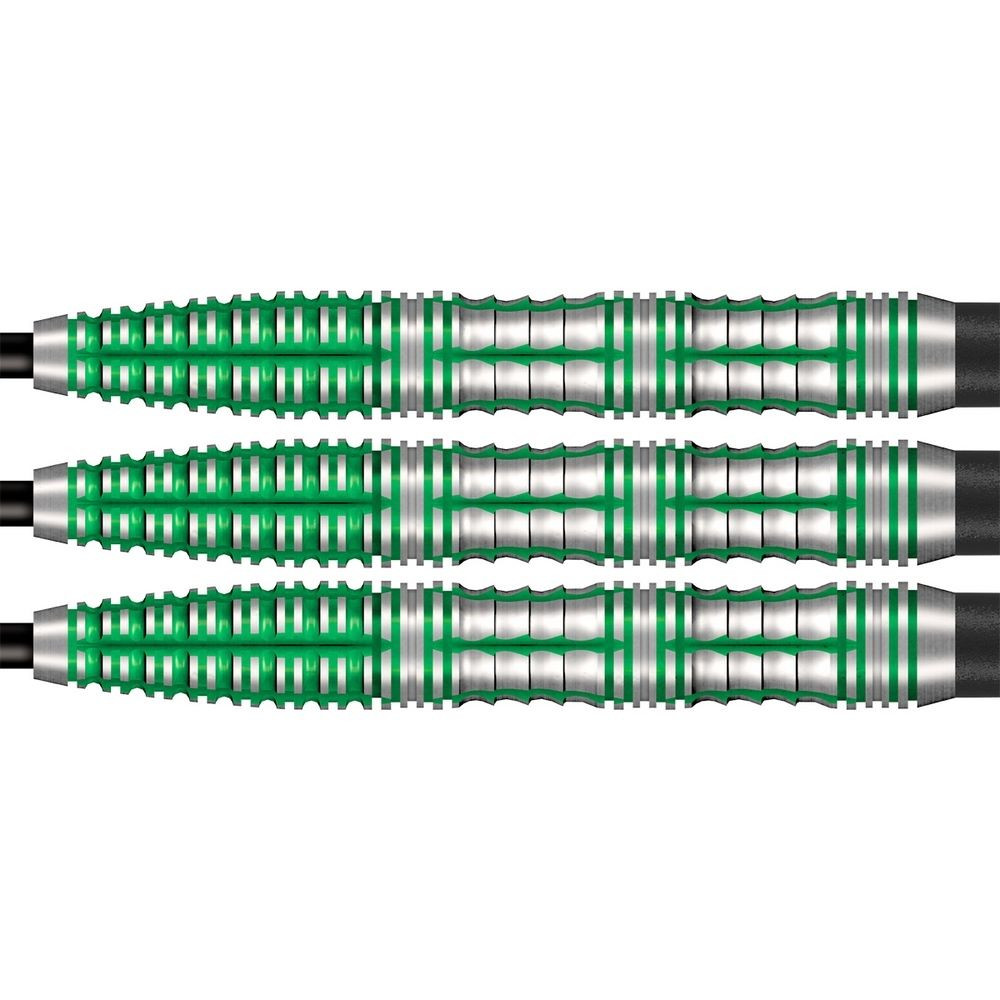 90 % wolfram zaručuje vysokú hustotu, štíhly profil a dlhú životnosť. Povrchová úprava v zelenom PCT dodáva šípkam moderný vzhľad a vyššiu odolnosť.