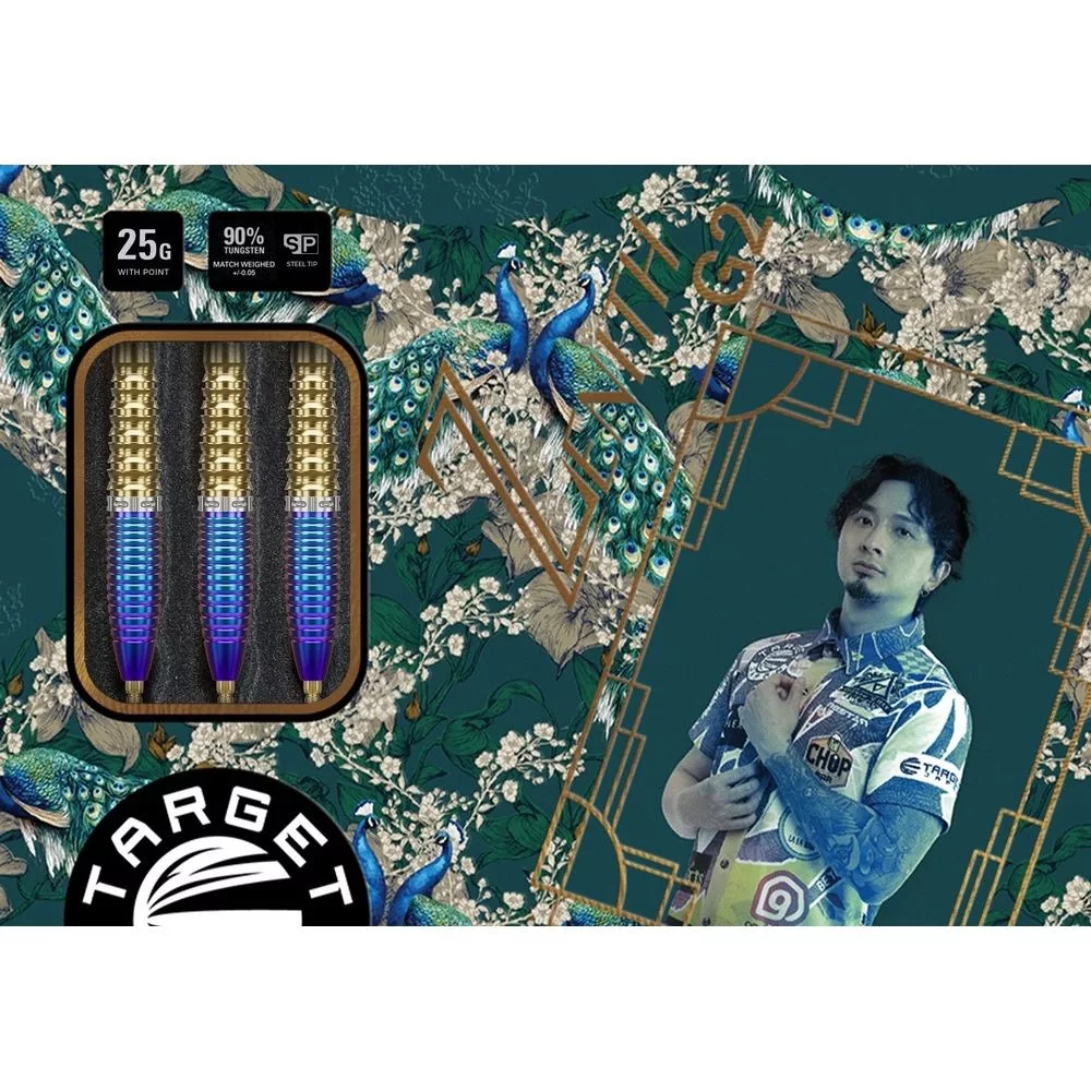 Target Prime Series Zenith G2 Ching Ho Tung – 25g, 90% wolfrám. Táto druhá generácia vznikla v spolupráci s legendárnym hráčom Ching Ho Tung (Tung Suk) a je inšpirovaná eleganciou pávích pierok – dokonalé spojenie výnimočného výkonu, stability a štýlu.