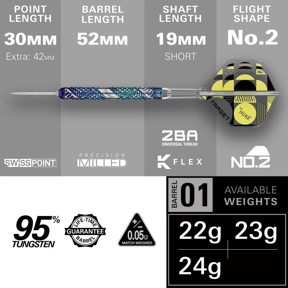 Lukeom Littlerom („The Nuke“) – tieto šípky odrážajú jeho charakteristický vzhľad a výkon. Exkluzívne balenie, špičková kvalita a dokonalé detaily z nich robia voľbu číslo jeden pre ambicióznych hráčov.