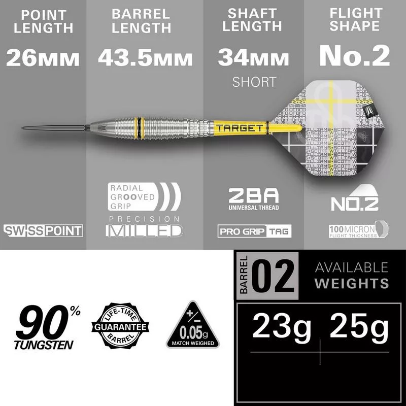Šípky steel Target Scott Williams G2 23g SP – 90 % wolfram (3 ks)