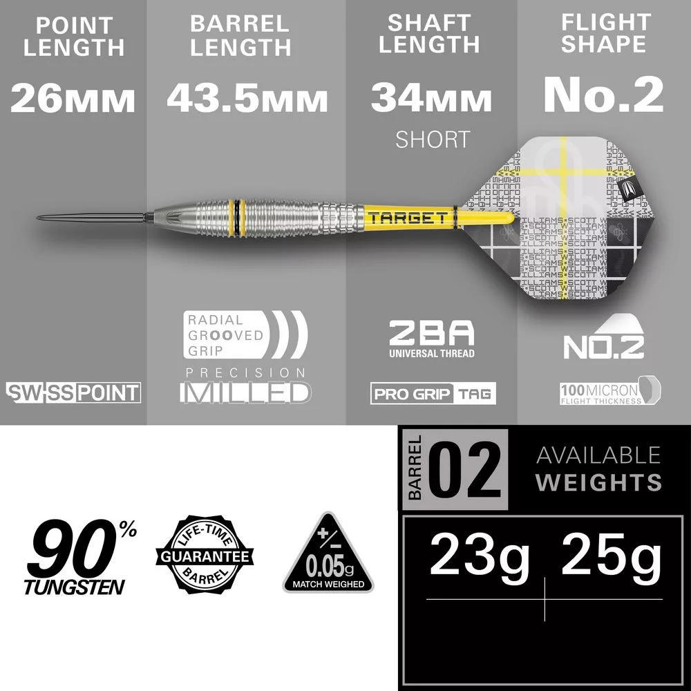Šípky steel Target Scott Williams G2 25g SP – 90 % wolfram (3 ks)
