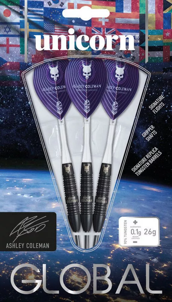 Unicorn Ashley Coleman 26g, šípkami navrhnutými pre globálnych hráčov, ktorí dominujú svetovým turnajom. Tieto šípky sú stelesnením excelentnosti tímu Unicorn, vytvorené podľa presných špecifikácií hráčov, ktorí na okruhu preukazujú nezlomnú presnosť a silu.