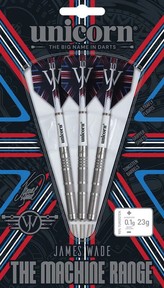 Vyrobené z 90% wolframu, s priemerom 6,7 mm a dĺžkou telíčok 50 mm, poskytujú dokonalú rovnováhu a stabilitu. Sada obsahuje Gripper násadky, letky James Wade Ultrafly a unikátne Volute hroty Unicorn, ktoré zabezpečujú pevné zapichnutie do terča bez poškodenia sisalového povrchu.