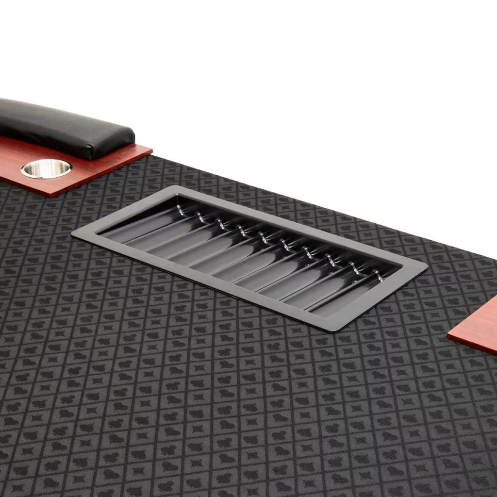 ideálny pokerový stôl pre domáce turnaje a večery s priateľmi. Vďaka skladacím nohám a praktickému dizajnu ho ľahko uložíte a znovu rozložíte podľa potreby. S profesionálnym poťahom, dostatkom miesta a elegantným vzhľadom ponúka všetko, čo potrebujete na kvalitný pokerový zážitok.