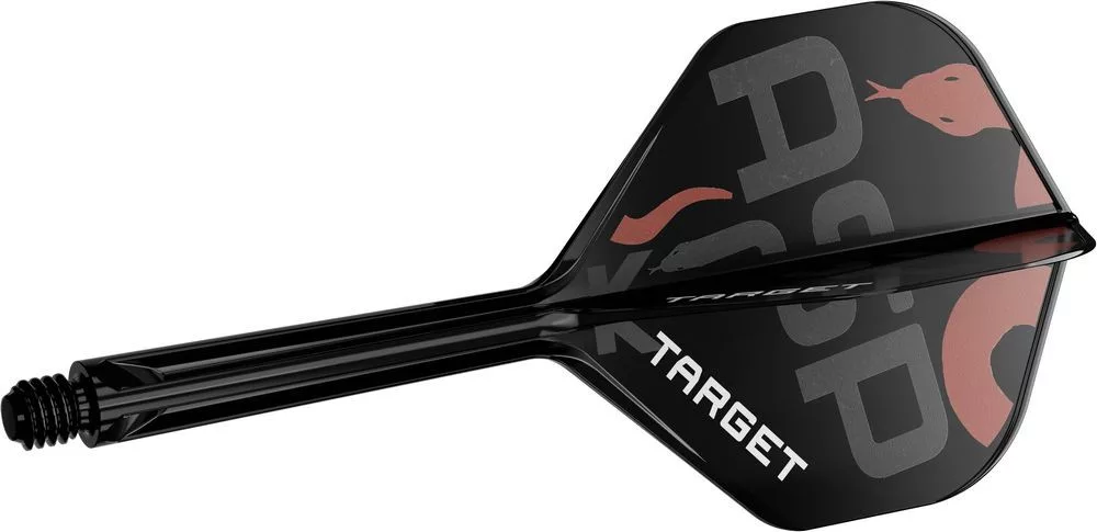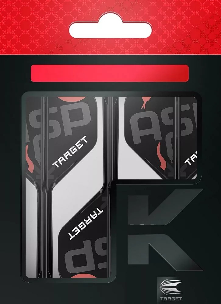Target K-Flex Nathan Aspinall No2 letky a dlhé násadky, navrhnuté v exkluzívnej spolupráci s Nathanom Aspinallom, známym ako „ASP.“ Tento profesionálny systém spája presnosť, flexibilitu a štýl s úderným dizajnom v červeno-bielych farbách a motívom hada, odrážajúcim jeho jedinečný herný štýl.