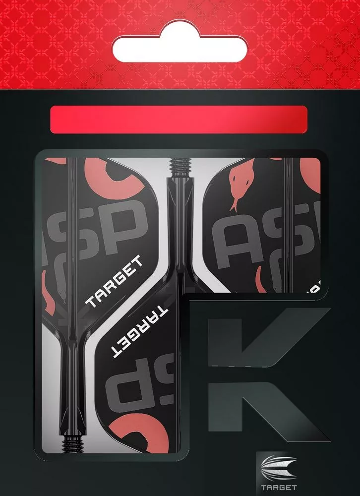 Target K-Flex Nathan Aspinall No2 letky a krátke násadky, navrhnuté v exkluzívnej spolupráci s jedným z najlepších šípkarských talentov, Nathanom Aspinallom. Inšpirovaný pohybom a presnosťou hada „ASP,“ tento profesionálny systém zdobí úderný motív hada v kombinácii s Aspinallovou prezývkou, zdôrazňujúc jeho dynamický štýl hry.