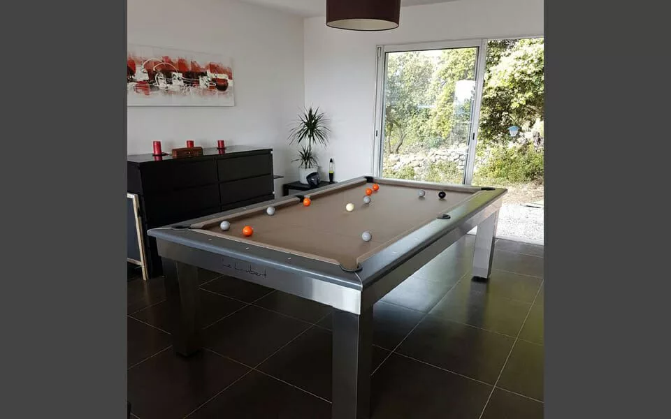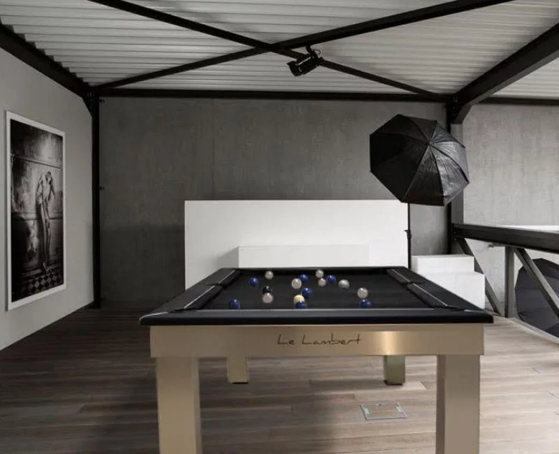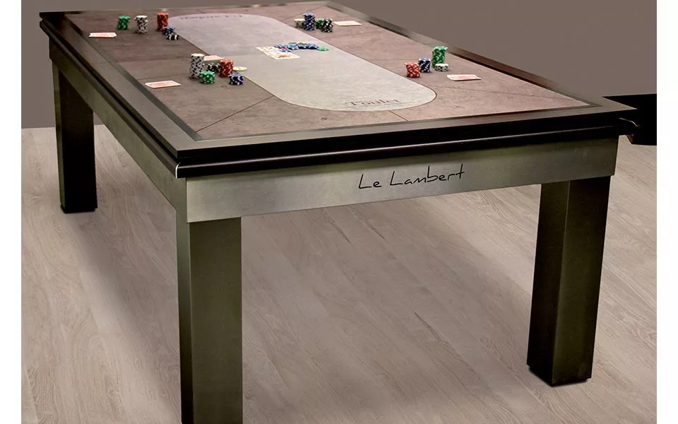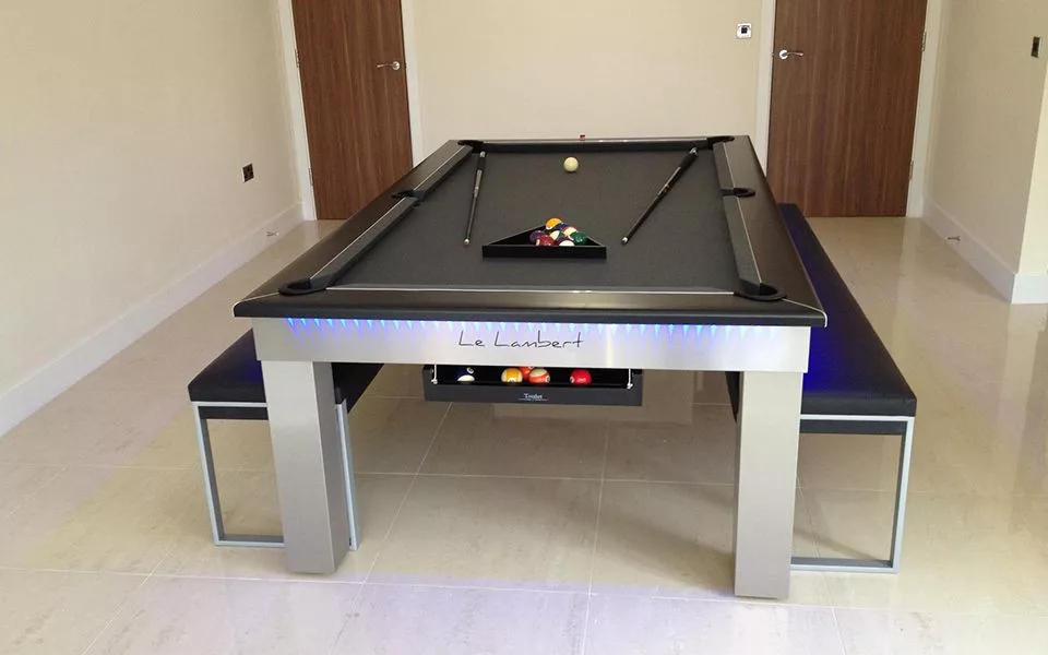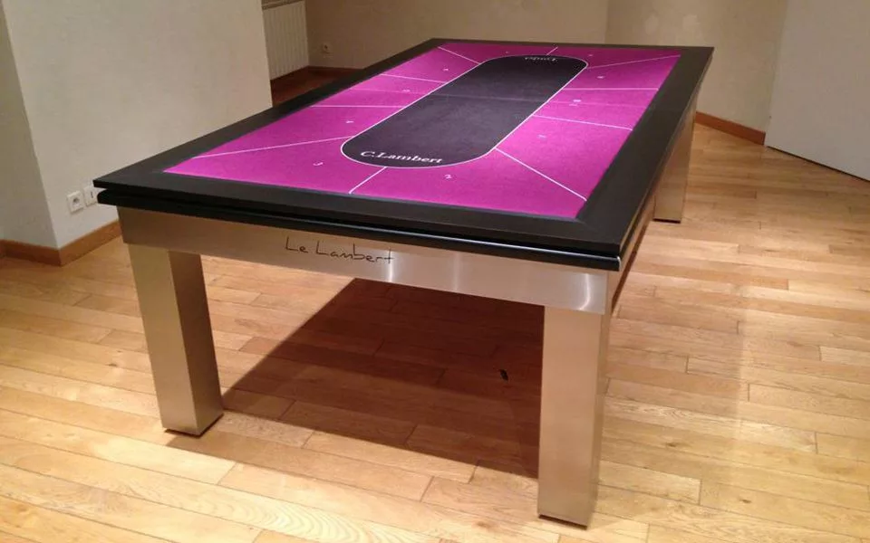 Biliardový stôl Le Lambert je biliardový stôl, ktorý je možné ľahko zmeniť na jedálenský stôl a kryciu dosku je tiež možné zmeniť na pokrový stôl a objednať vo farbe podľa vlastného výberu.