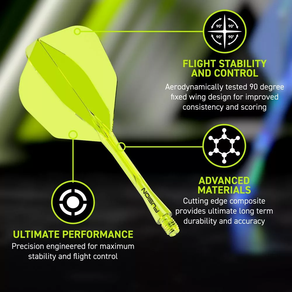 Winmau Fusion Neon žlté, No6 letky a stredné násadky. Tento integrovaný systém násadiek a letiek je navrhnutý s dôrazom na maximálnu funkčnosť a trvácnosť.