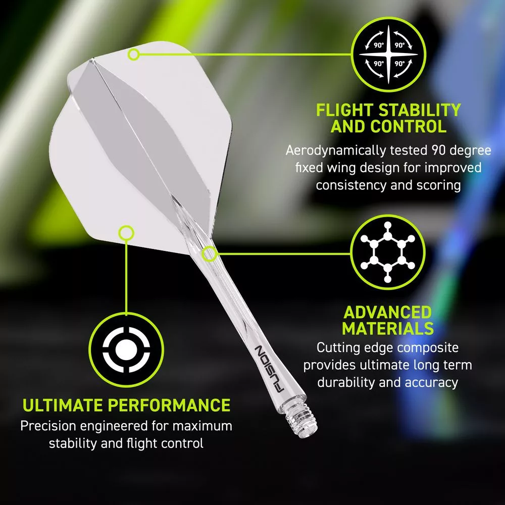 Winmau Fusion priehľadné letky a dlhé násadky No2 ponúkajú dokonalé riešenie pre hráčov, ktorí vyžadujú maximálnu kontrolu a presnosť pri každom hode. Tento
