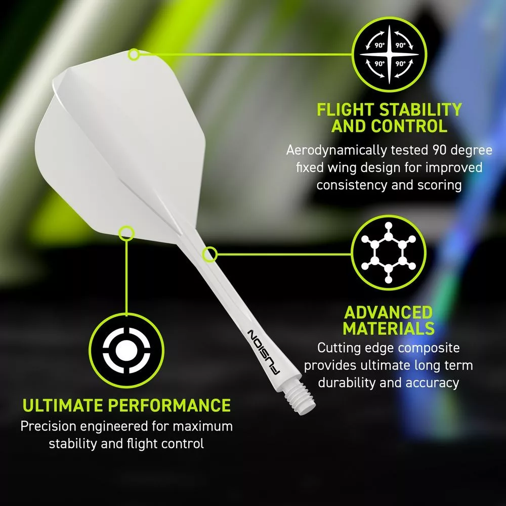Winmau Fusion No6 ponúka špičkový výkon vďaka plne integrovanému systému letky a násadky v jednom kuse. Precízny 90° profil krídel a inovatívny polymérový materiál zaručujú mimoriadnu stabilitu letu, výbornú presnosť a extra dlhú životnosť. Stredná násadka (28 mm bez závitu) poskytuje ideálnu rovnováhu medzi kontrolou a stabilitou, pričom priehľadná biela farba je univerzálna, moderná a ľahko viditeľná. Systém all-in-one zaručuje, že počas hry už nikdy nebudete riešiť povolenie alebo vypadnutie letky.