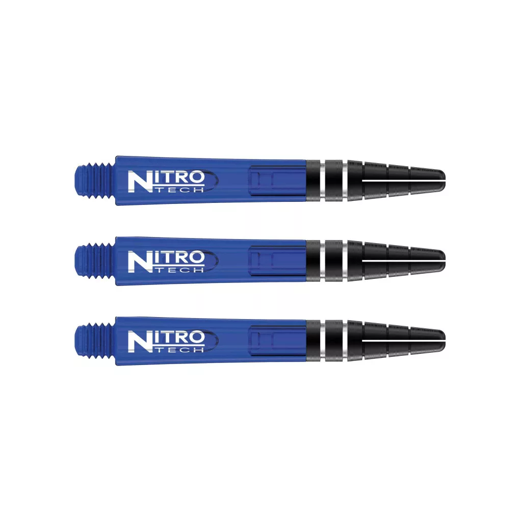 plastovými násadkami Red Dragon Nitrotech v elegantnej modrej farbe. S dĺžkou 36 mm (bez závitu) sú tieto krátke násadky ideálne pre hráčov, ktorí preferujú rýchly a dynamický štýl hodu.