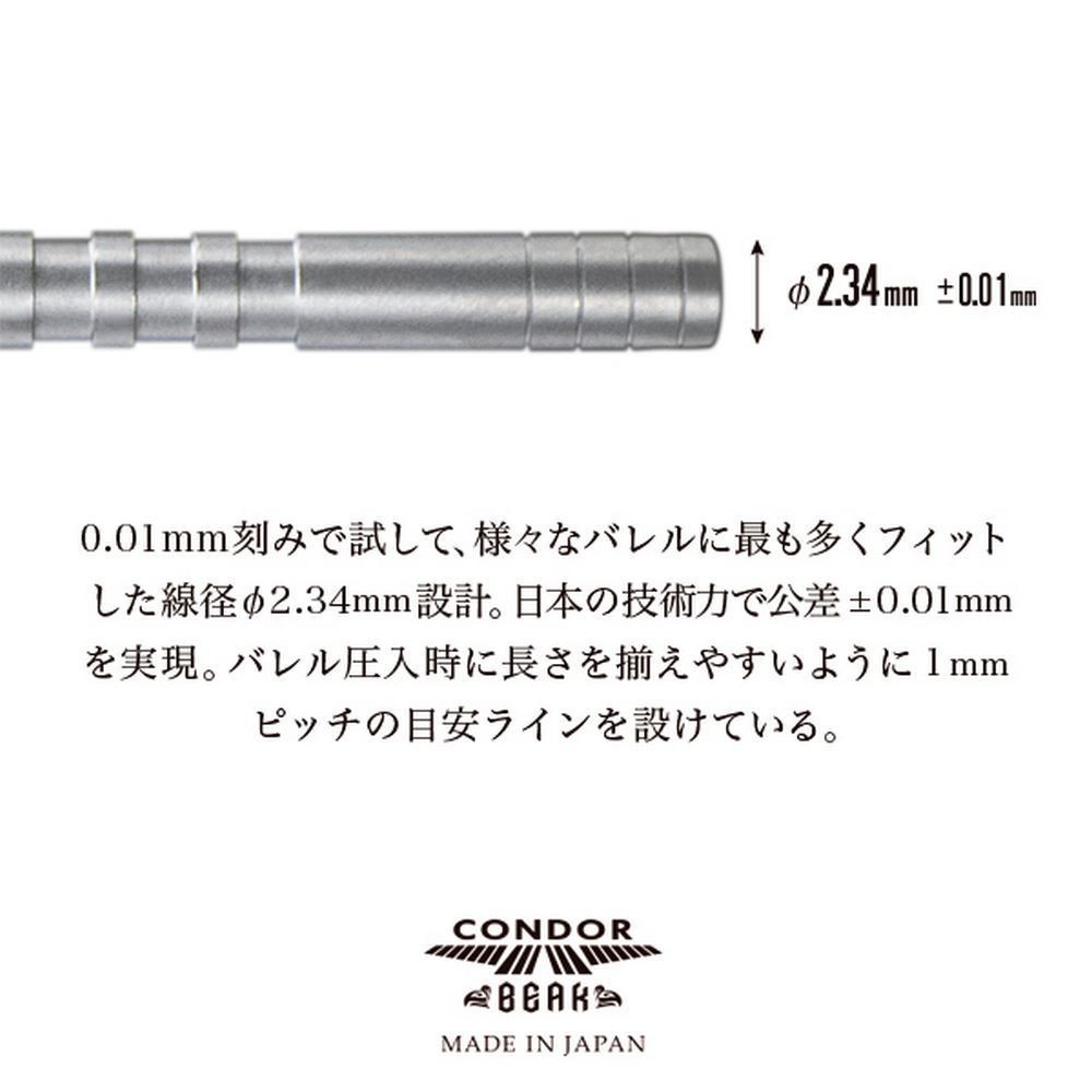 Condor Beak Point drážkované hroty na steel šípky prinášajú dokonalosť do každého hodu. Tieto špičkové 50 mm hroty sú vyrobené z mimoriadne odolnej japonskej zliatiny, ktorá zaručuje dlhú životnosť a výnimočný výkon. Navrhnuté s drážkovaním do 15 mm od špičky, hroty zaručujú pevné uchytenie v terči a zároveň minimalizujú jeho poškodenie.