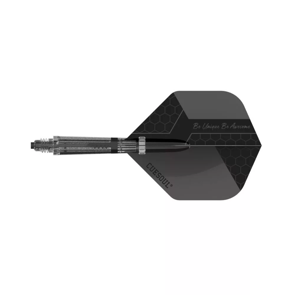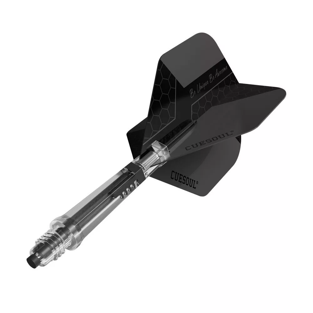 Cuesoul KOFF čierne Big Standard s karbonovou násadkou veľkosti 4 – tradičný vzhľad, moderná výdrž, maximálna stabilita letu a jednoduchá údržba pre všetky typy hráčov.