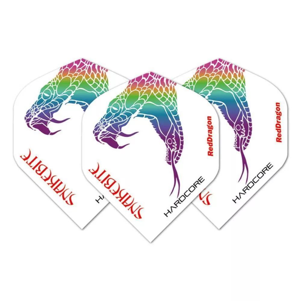 Set obsahuje 3 letky na šípky Red Dragon Hardcore Peter Wright Snakebite biele.