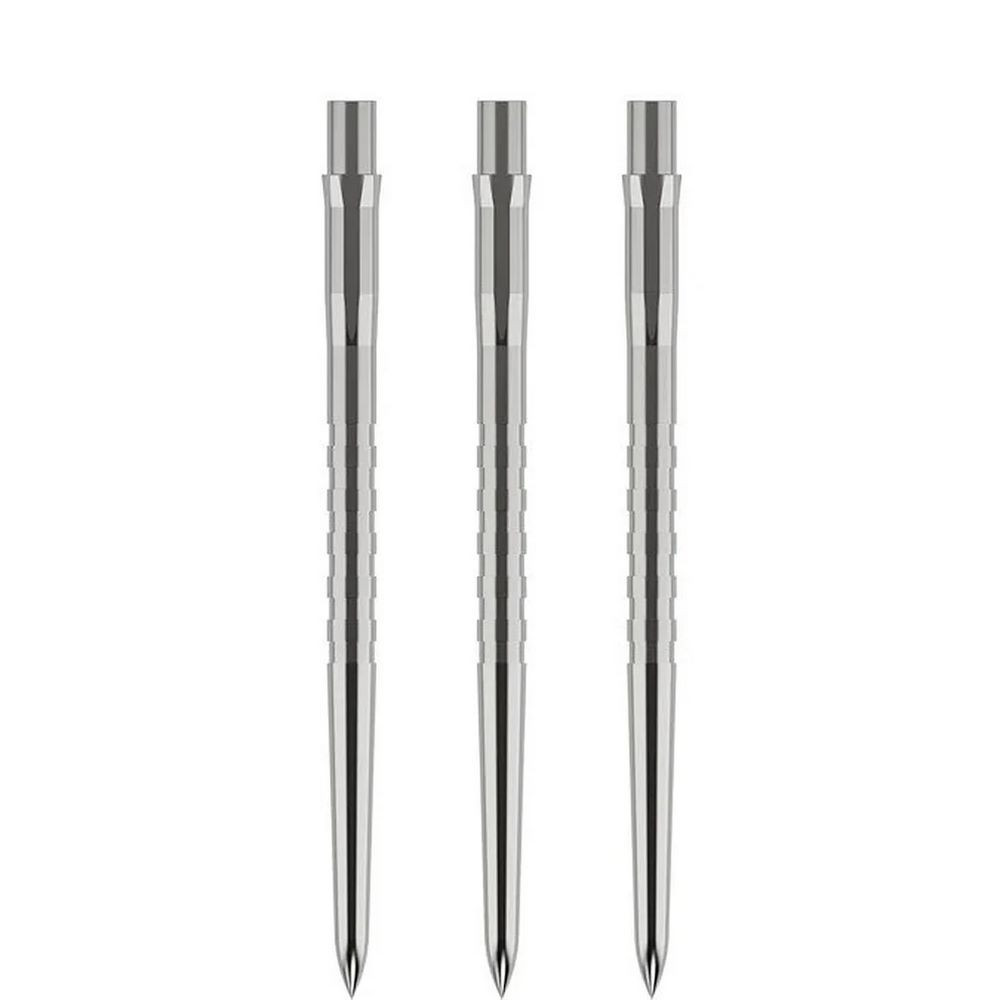 Mission Caliburn EVO Grooved 38 mm v striebornom prevedení. Tento revolučný systém, vytvorený v spolupráci so značkou Caliburn, umožňuje rýchlu a jednoduchú výmenu hrotov na steel šípkach bez potreby špeciálne upraveného barrelu.