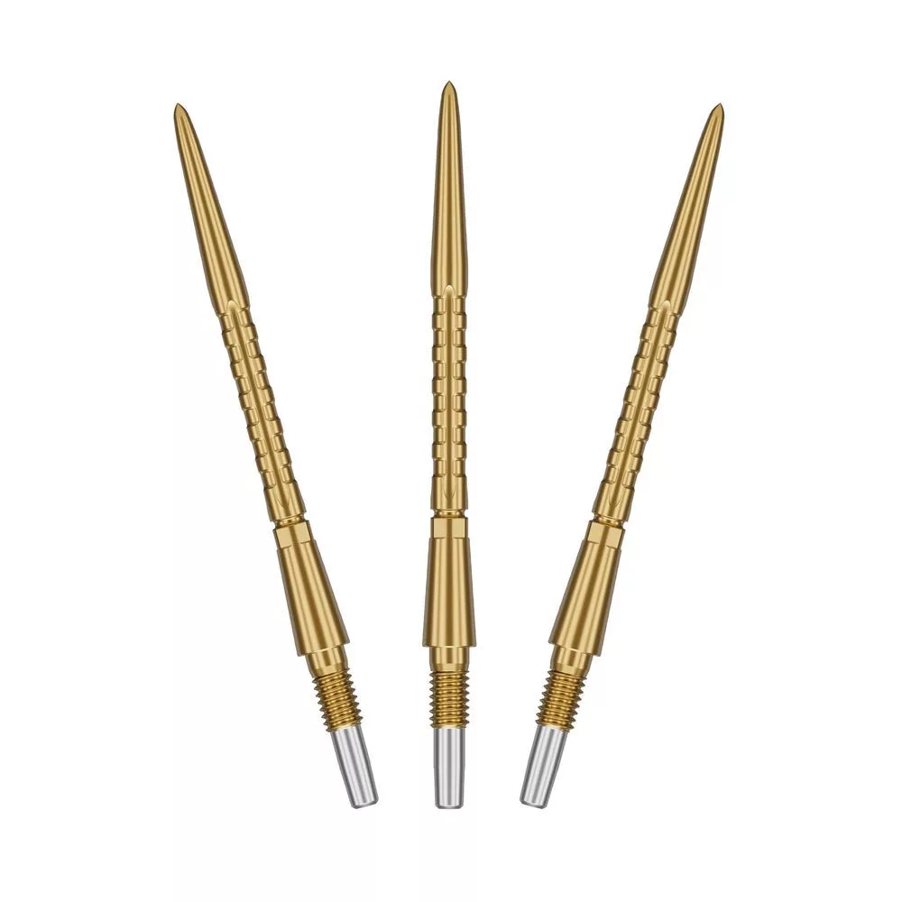 nerezovej ocele, ktorá bola spevnená povrchovým vákuovým kalením, hroty ponúkajú vynikajúcu odolnosť proti ohýbaniu a opotrebovaniu. Stredová časť s CNC frézovanými drážkami zabezpečuje lepší úchop a konzistentné hody, zatiaľ čo zlatý povrch dodáva jedinečný estetický prvok.